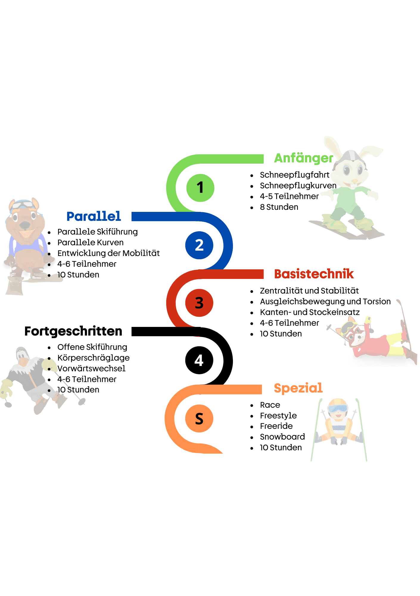 Beim Unterrichten gehen wir neue Wege und nutzen alternative & motivierende Lerntechniken. Durch unser modulares System und der Konzentration des Kurses auf mehrere aufeinanderfolgende Tage heben wir uns von traditionellen Wochenskikursen ab und begünstigen die Lernfortschritte der Kinder auf der Piste.
